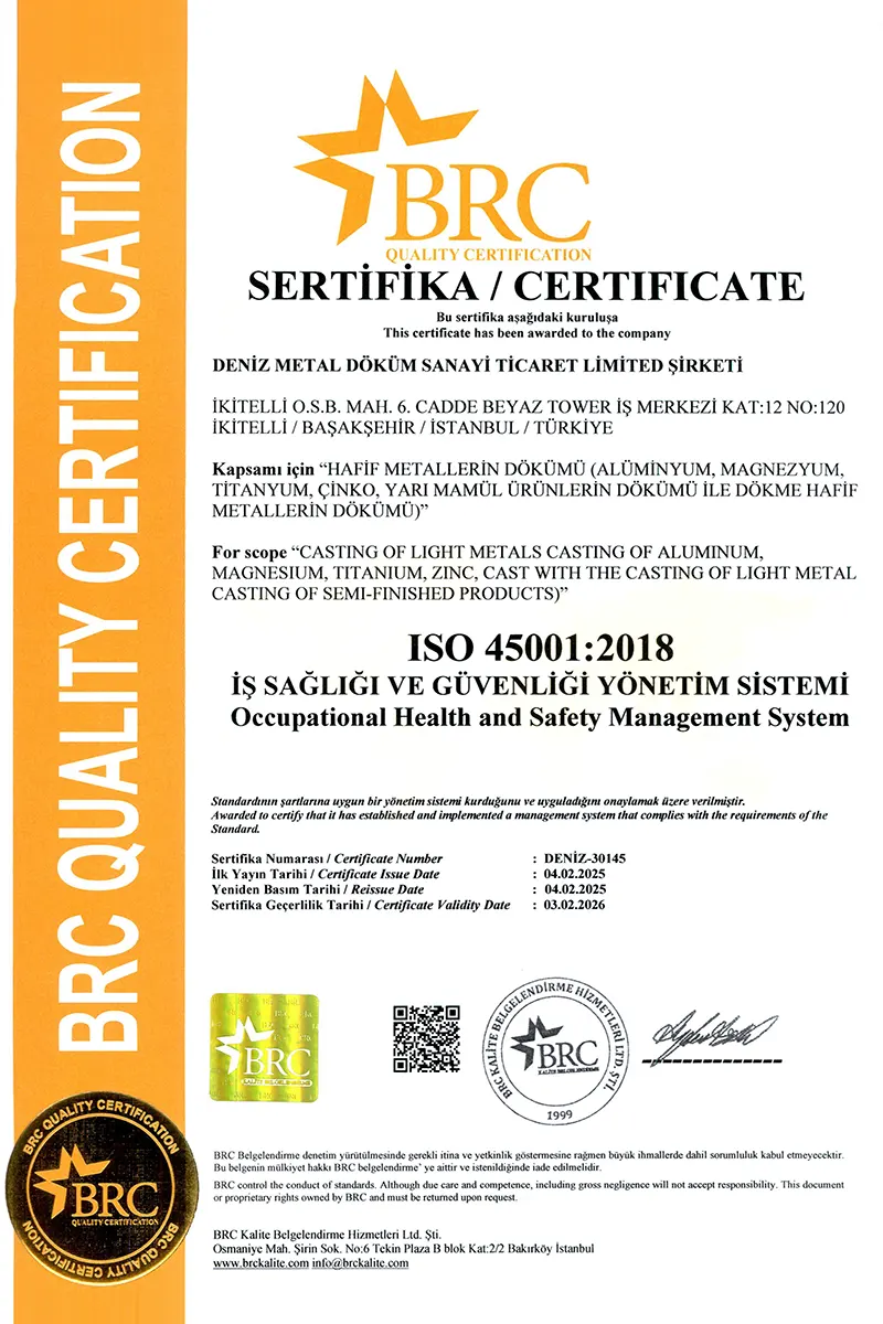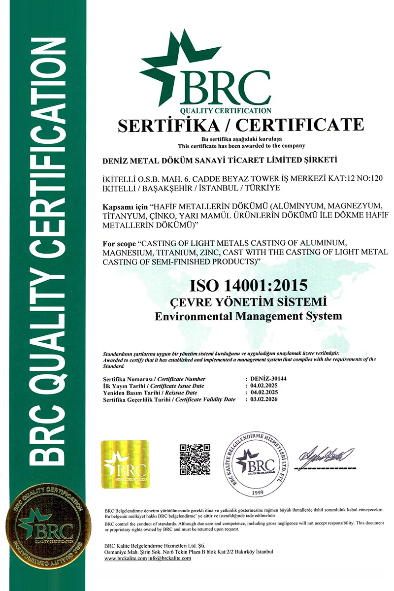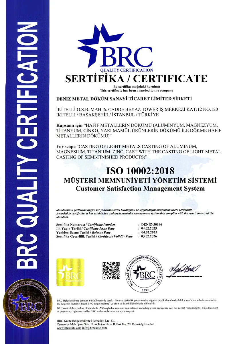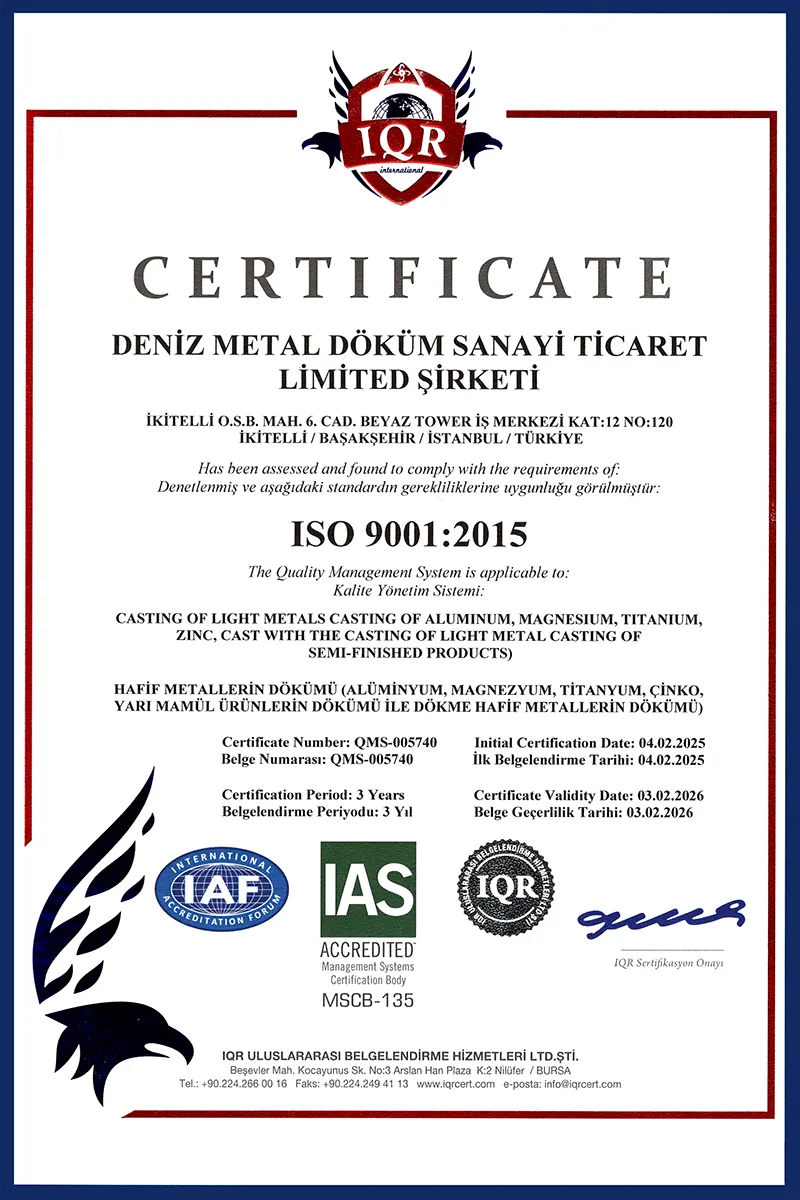 تعطي شركة Deniz لصب المعادن أهمية كبيرة لدراسات البحث والتطوير، كما توسع مختبارتها سنويا عبر القيام باستثمارات جديدة في التكنولوجيا لتقديم منتجات تلتزم بمعيار الجودة ISO 9001